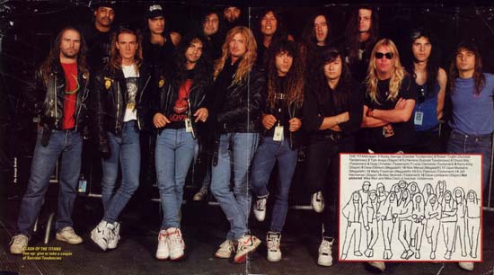 - Менеджмент SLAYER'a пытаются присвоить себе все лавры за проведение тура. Но это заслуга нашего менеджера Рона Лафита! SLAYER никогда не смогут сыграть Hangar 18, In My Darkest Hour или No More Mr. Nice Guy. TESTAMENT? Они звучат как METALLICA. ANTHRAX никогда не были в большой четверке - вместо них там EXODUS! ANTHRAX просто повезло - пять детишек в шортиках дурачатся.